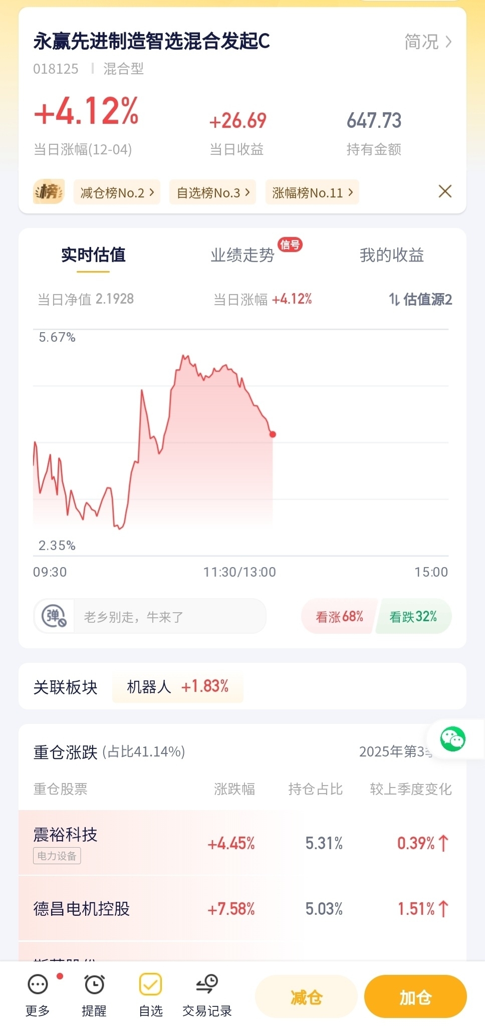 今天这基涨得挺猛啊!先进制造板块今天发力,资金往这涌,直接把它带飞了,这收益看着真舒服~