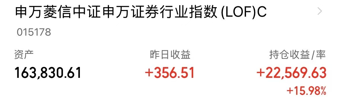 今天考虑加,这两天越低我越敢加,后面大盘想回到4000,我觉得还需要证券发力助攻,所以我还是坚持布局,等风来$申万菱信中证申万证券行业指数(LOF)C(OTCFUND|015178)$