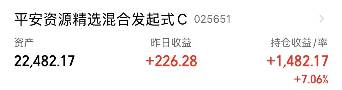 今天我不动,有色回暖,近期比较强势,美联储降息背景下,我长期看好有色,后面遇到回踩再考虑加大$平安资源精选混合发起式C(OTCFUND|025651)$