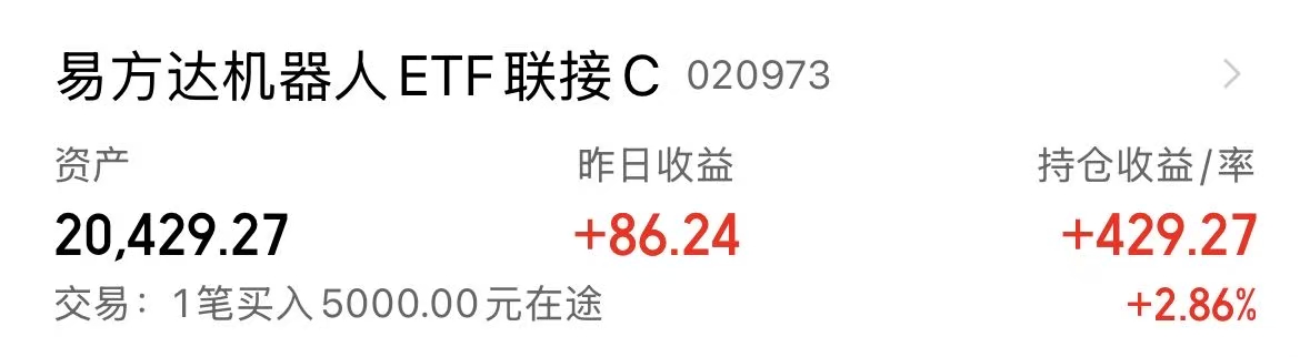 今天我加仓了$易方达机器人ETF联接C(OTCFUND|020973)$ 5000元