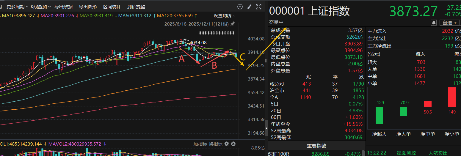 技术面上,还是不变,还是三段回落中,已经走了A、B前两段,现在在进行C,C走完我觉得可以期待一下下一轮上升空间