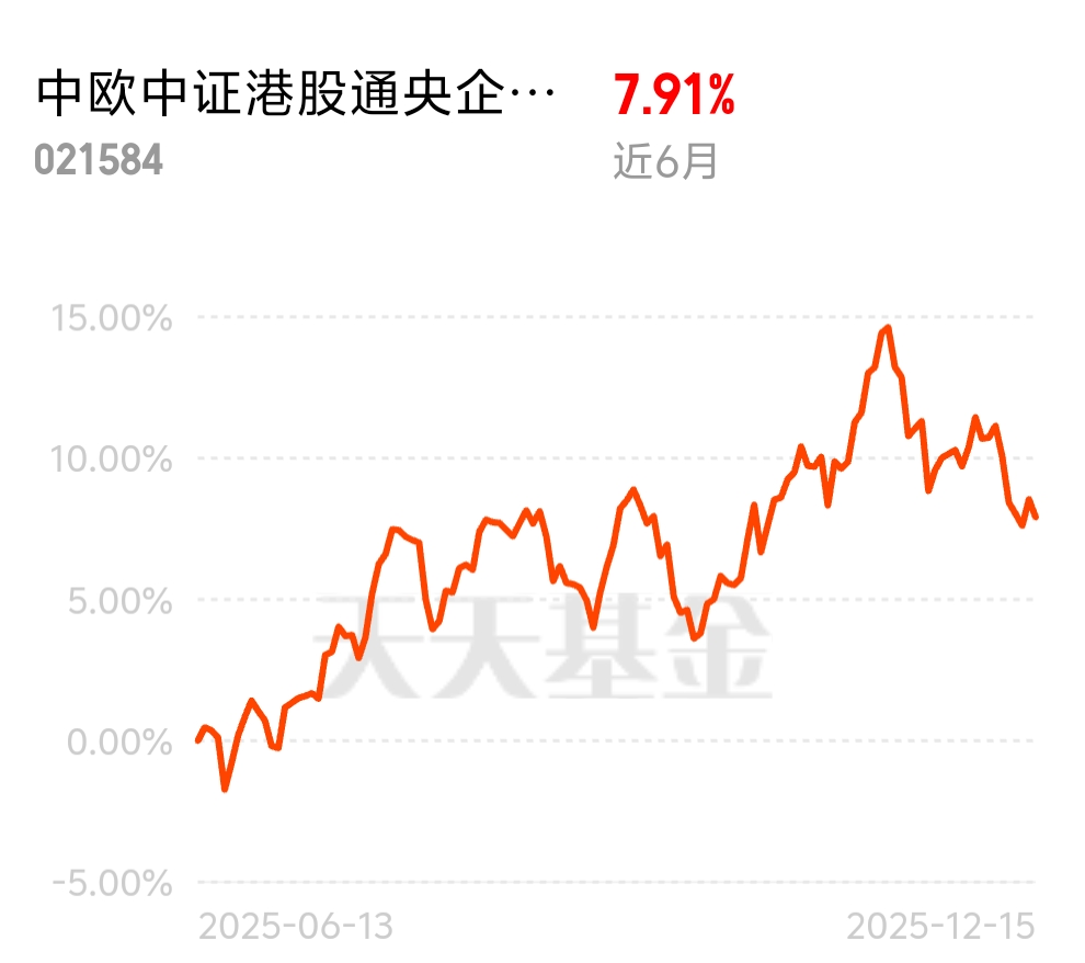 全球资金在找低估值机会,港股修复趋势不改,近期调整是布局窗口。$中欧中证港股通央企红利指数发起(QDII)C$ 近 6 月 7.91%,短期配置性价比高,还能享长期成长。