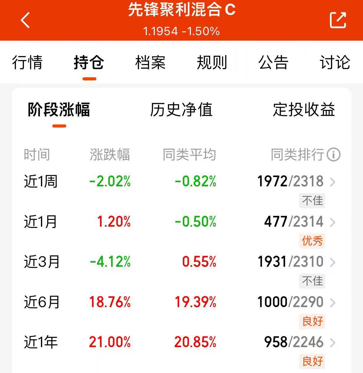 守得云开见月明,科技板块调整后终于迎来反弹,先锋聚利C作为科技板块的优等生,连续多年排名靠前,主动管理能力突出,科技长期上涨趋势明确,适合长期持有。