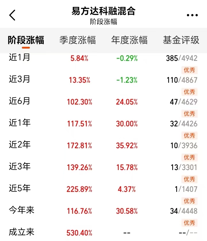 像$易方达科融混合(OTCFUND|006533)$聚焦科技、新能源、军工等多个赛道,靠扎实研究灵活调仓,稳稳抓住轮动收益。这基夏普比率表现出色,6年翻了5倍的战绩也是优秀呢,我也打算继续持有了。