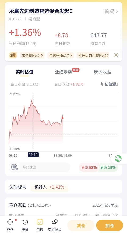 永赢先进制造智选混合发起式今日预估涨幅1.36%!