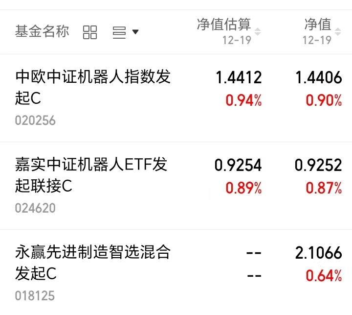 今天市场呈现普涨态势,热点轮动活跃,受多重利好推动情绪回暖,但午后上攻遇阻尾盘有所回落。机器人赛道今日也是迎来了反弹,表现还不错,一起看看净值更新表现: