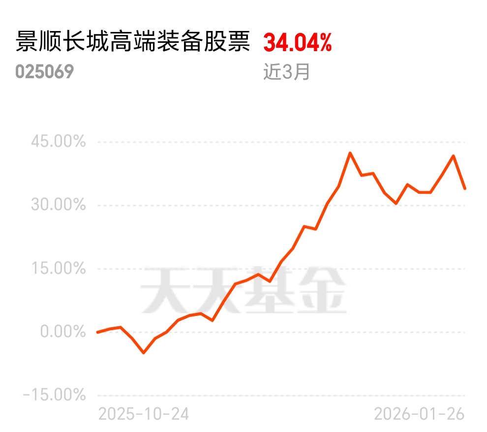 马斯克三连炸带火太空资源 + AI + 机器人,商业航天的发展潜力根本挡不住,短期调整就是捡机会的好时候,$景顺长城高端装备股票$ 近 3 月 34.04%,布局卫星航天军工,跌少涨跟得上,浮动费率绑定收益超安心