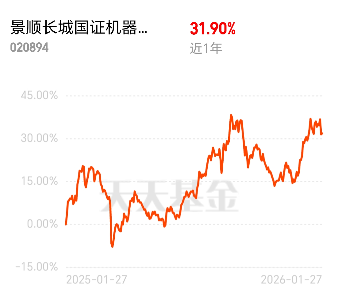 做波段就选 7 免的基,景顺长城国证机器人 ETF 联接 C 近 1 年 31.90%,昨天翻红今天回调,低吸布局正当时。春节临近,春晚带动机器人板块行情,把握机会不吃亏