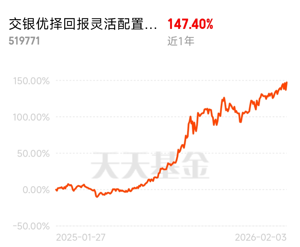 $交银优择回报灵活配置混合C$近年涨幅达147%表现确实挺优异,其配置赛道成长性