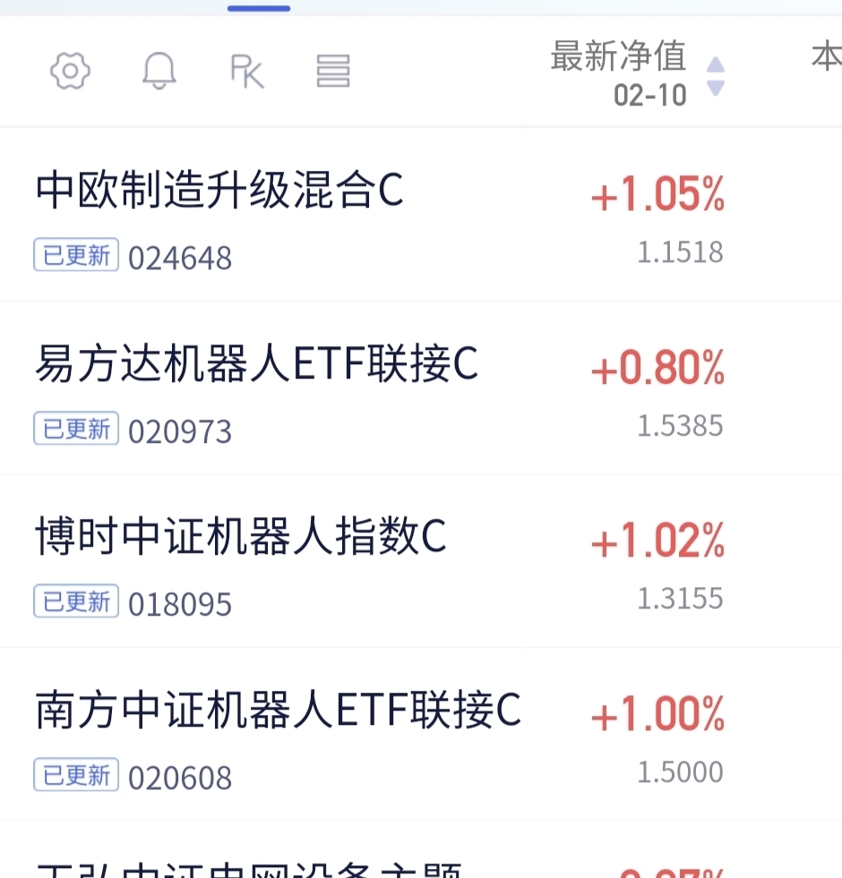 中欧制造升级混合这只主动的人形机器人基金!今天涨幅1.05%!同类主动机器人再度做到了你!