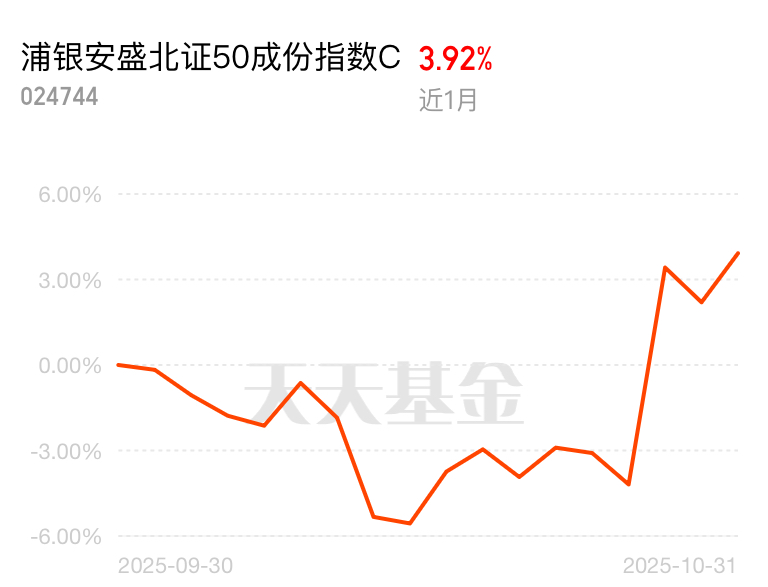 $浦银安盛北证50成份指数A$费率低不限额,7天免赎回费,北证50有30cm高弹