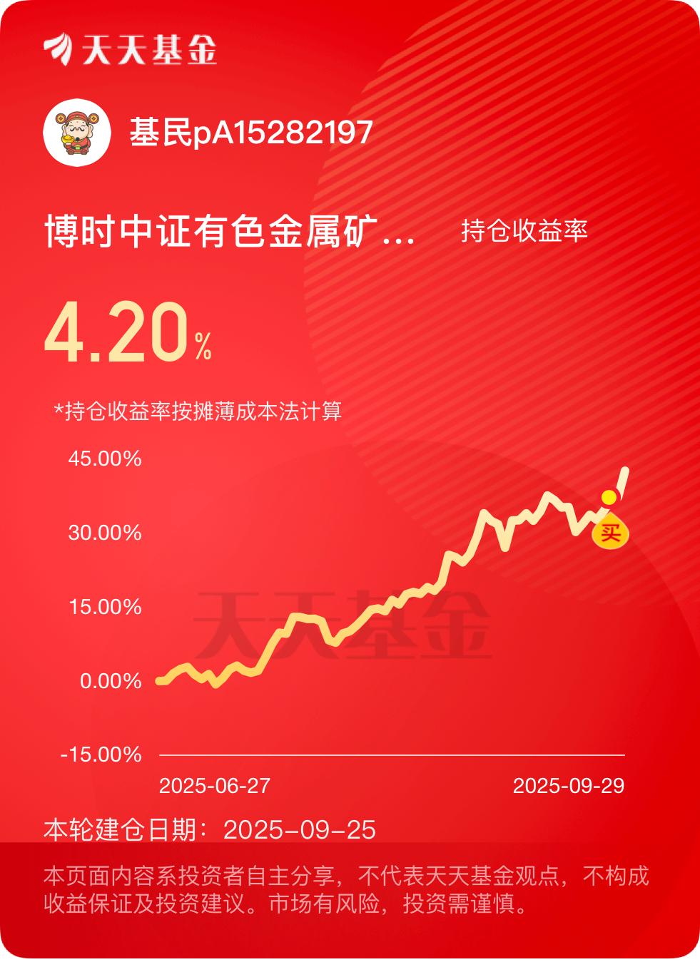 美联储降息周期开启,美元走弱,有色金属用美元计价,价格自然就上去了,这只基也跟着