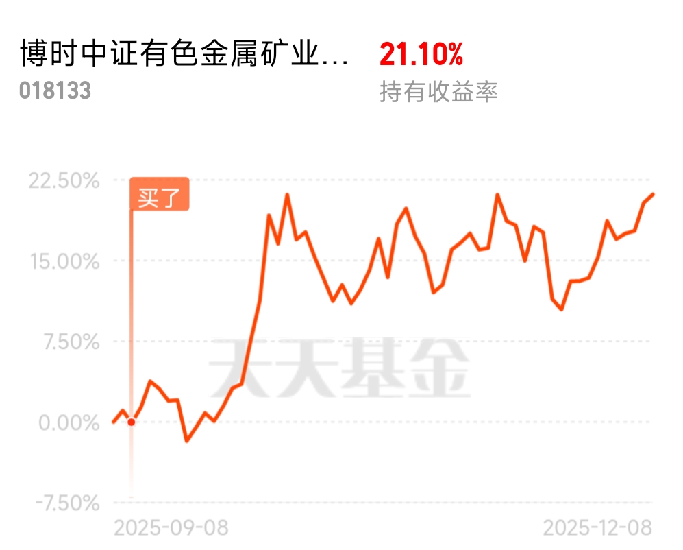 涨幅创近1年新高,金属涨价这红利这基是吃满了$博时中证有色金属矿业主题指数C$