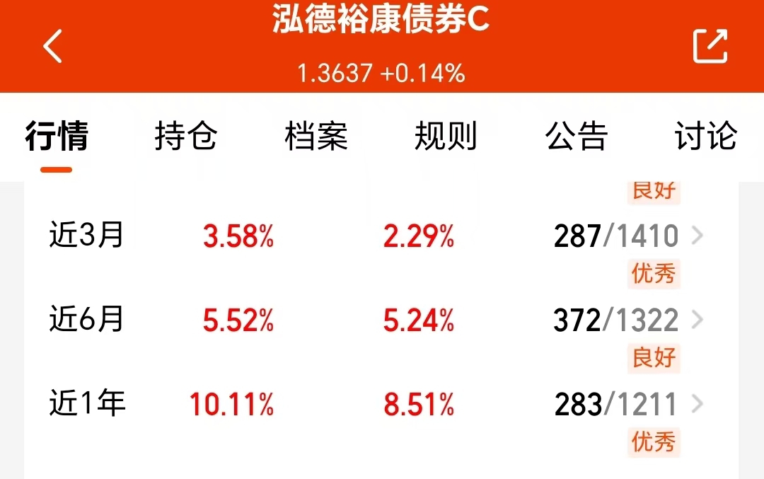 裕康今天又收蛋14个,近一年收益10.11%全部偏债混,一级债和二级债的产品共2
