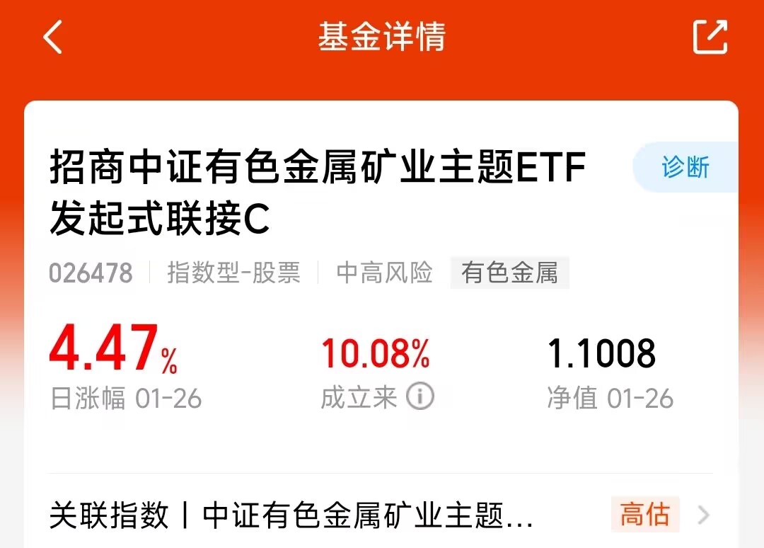 今天 A 股太惊喜了!指数探底回升,金银价格还创出新高,这都是地缘政治紧张带来的避险需求在发力。我打算趁这个势头布局,加仓$招商中证有色金属矿业主题ETF发起式联接C(OTCFUND|026478)$这只基金跟踪有色矿业指数,主打上游资源龙头,专攻开采冶炼领域,后市成长性很足,今天估值还涨了 1%。美欧冲突加剧会推动有色价格上涨,进一步放大相关公司利润,这个赛道弹性大、潜力足,今天加仓等着吃红利。