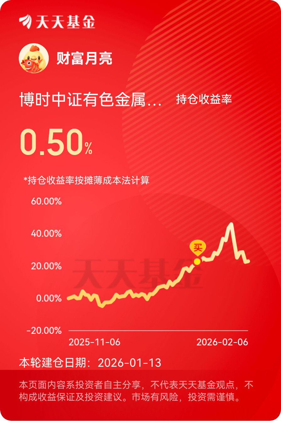 #有色金属集体反弹!上车机会来了马?# 上周五有色板块这波“深V”翻红,挺提气的。早盘低开,一度让人捏把汗,但随后一路震荡走高,10:10左右就翻红了,湖南黄金、中钨高新这些龙头都涨得不错,板块情绪明显回暖。这种低开高走的走势,往往说明资金承接意愿不弱,短期调整更像是获利盘回吐。$博时中证有色金属矿业主题指数C$ 主要布局铜、铝、黄金、稀土、锂等上游资源龙头,是比较纯粹的有色矿业贝塔工具。从大环境看,有色板块现在有不少看点,一方面,美联储降息预期还在,全球流动性整体偏宽松,对大宗商品和有色板块都是利好;另一方面,新能源、AI这些新经济方向对铜、铝、稀土等金属的需求还在往上走,供给端又受资源约束和环保政策影响,价格中枢有抬升的预期。再加上国内对铜、铝等产业高质量发展、资源储备体系的政策支持,行业中长期逻辑挺顺的。#晒收益#