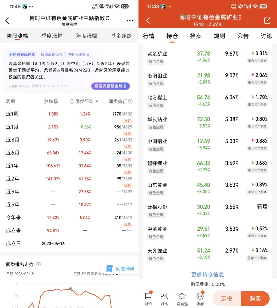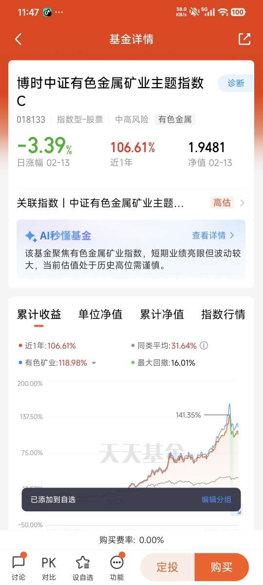 我的明确观点:2026年有色板块机会大于风险,这只基金费率低、持仓强、跟涨准,非常适合普通投资者。坚持长期底仓不动,短线灵活操作,既能抓住趋势行情,也能控制波动,是当前布局有色金属性价比很高的选择。
