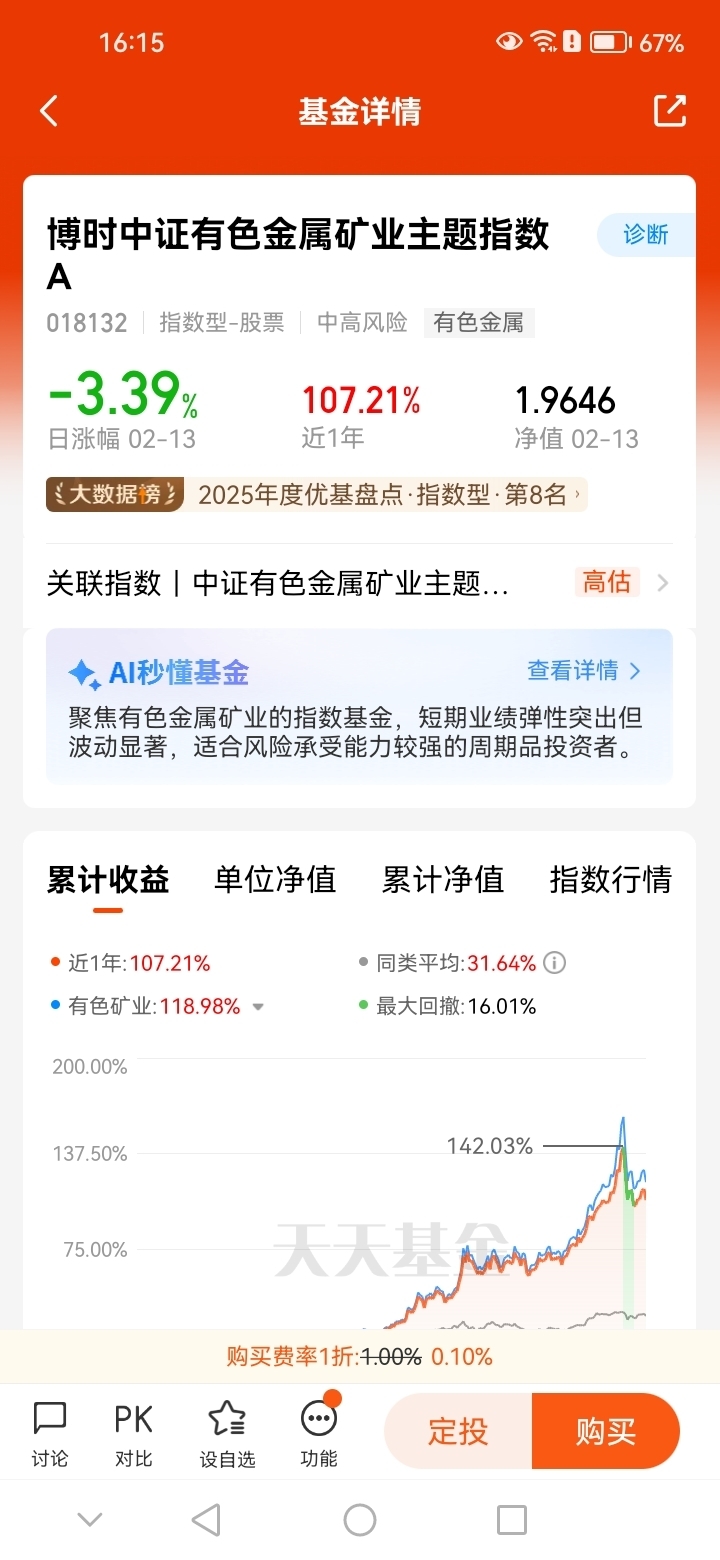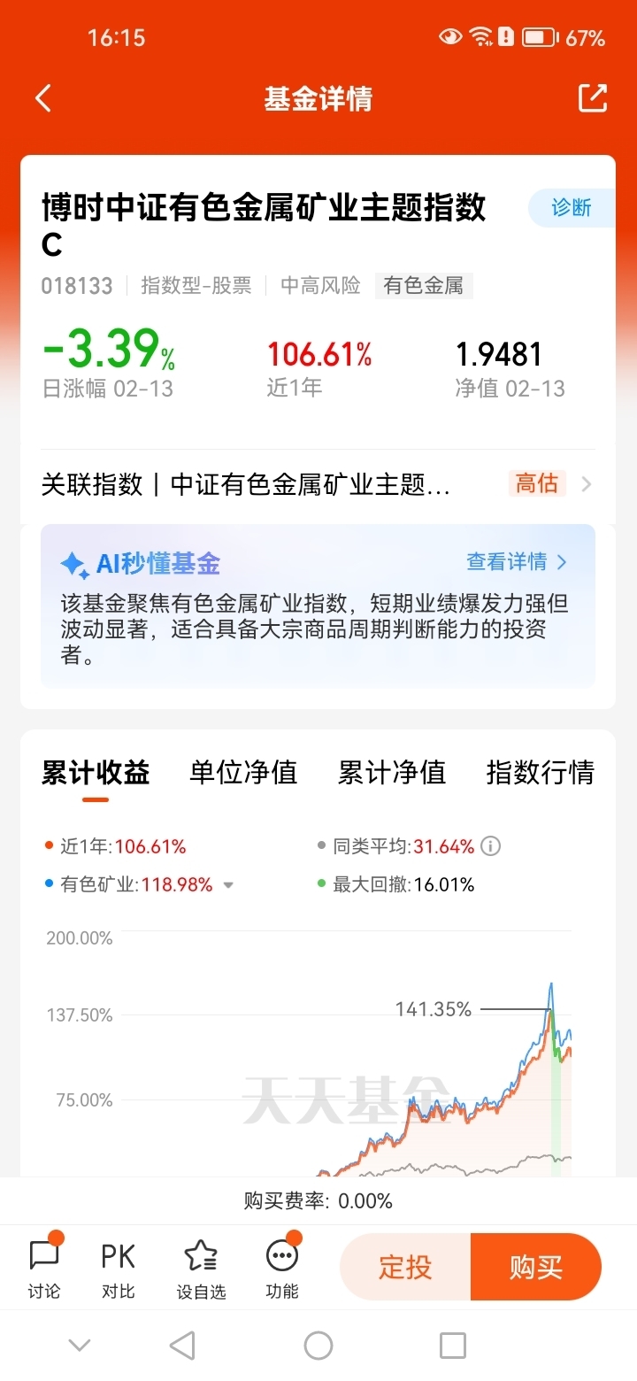 看好有色金属板块长期投资机会$博时中证有色金属矿业主题指数C$ 。