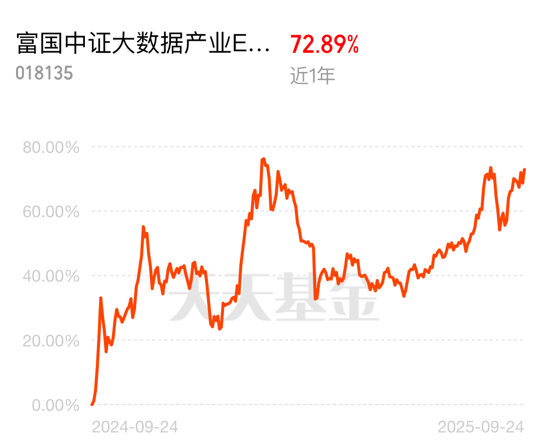 中证大数据产业指数,覆盖了云计算、大数据服务和相关硬件设备企业,能直接分享AI算力和数据应用增长带来的红利。不想掉队,可以选择被动跟踪中证大数据产业指数的$富国中证大数据产业ETF发起式联接C$