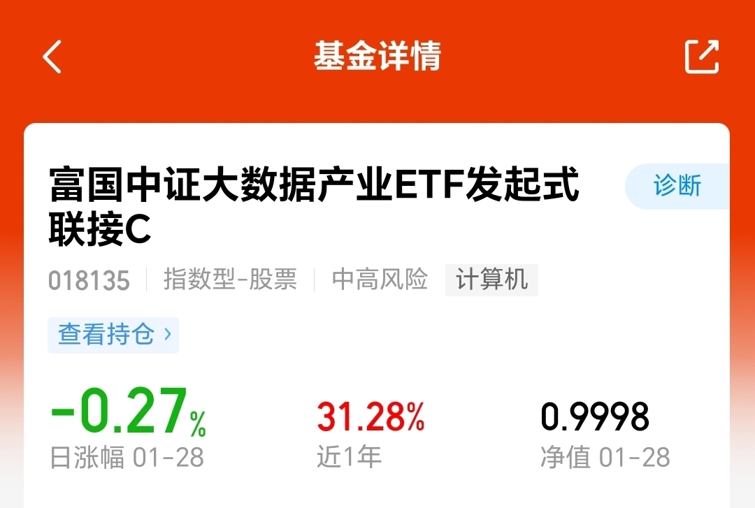 我最近越研究越觉得,大数据是未来几年的黄金赛道,而我选的布局方向就是$富国中证大数据产业ETF发起式联接C$ 。现在不管是日常精准推送、企业转型,还是智慧城市建设,哪儿都离不开大数据,它早就不是虚概念,是实实在在的核心生产力。