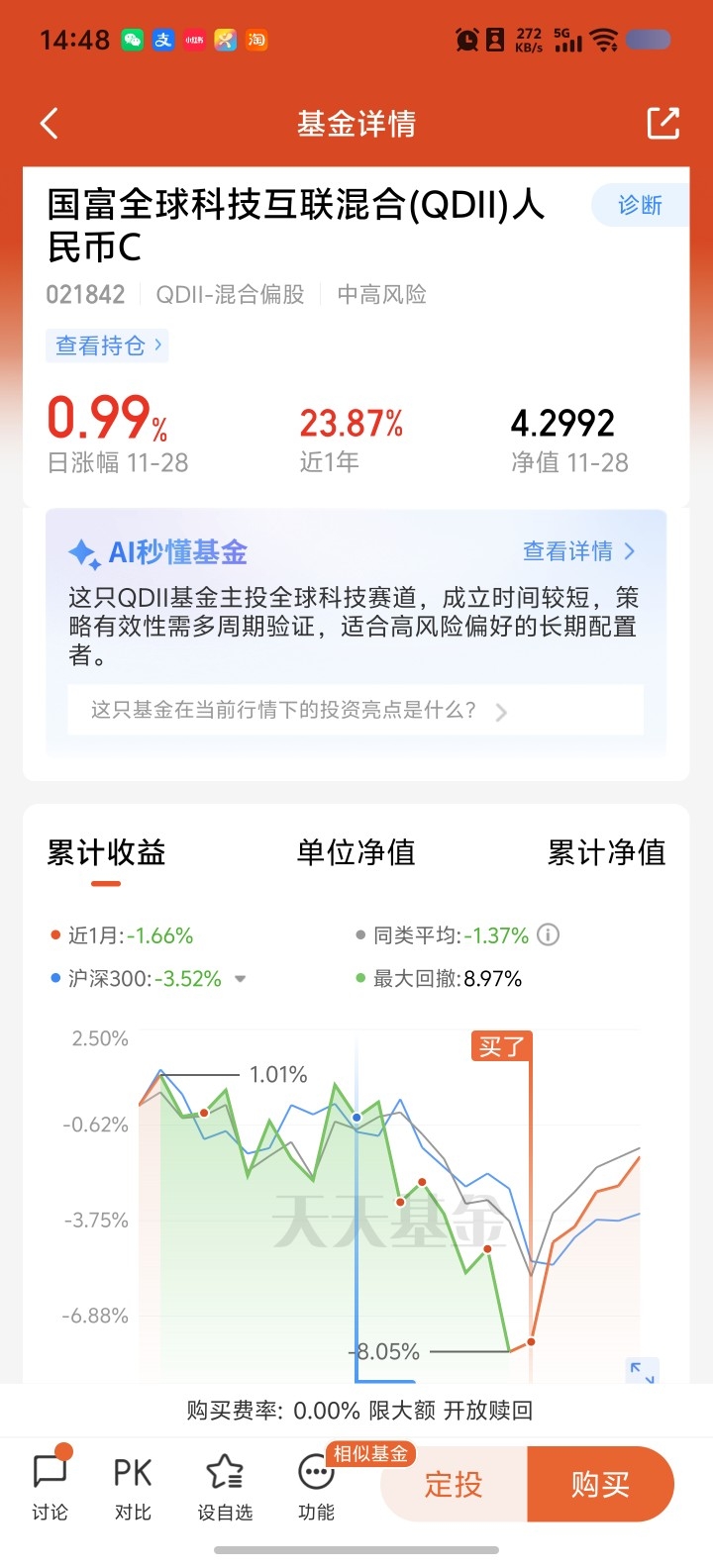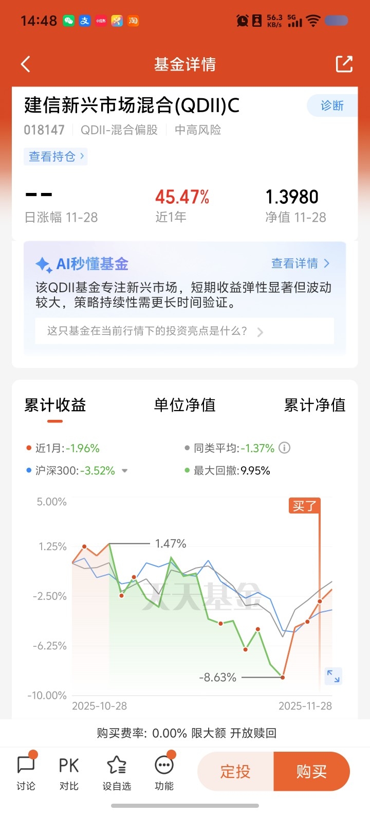 这次美股下跌,就主要补你和国富。建信新兴市场主打半导体,弹性更大,涨跌幅度更猛。