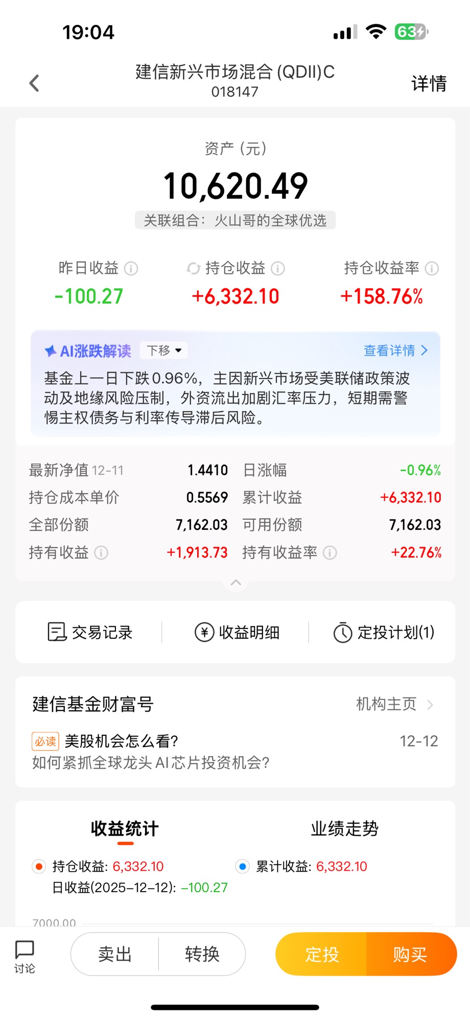 在大跌之前,减仓了3份之2之后继续定投看好!