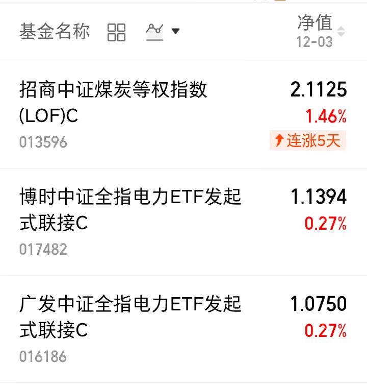 新一轮寒潮提振需求,第四季度煤炭价格上涨,$招商中证煤炭等权指数(LOF)C(OTCFUND|013596)$昨天逆势上涨1.46%,涨幅继续拉升,值得关注。