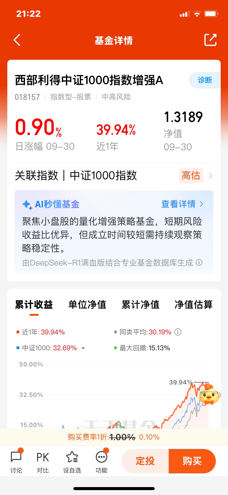 这个国庆假期,我选择避开人山人海的景区,在家静下心来复盘今年的投资。看着账户里起伏的收益曲线,不禁思考:在2025年最后一个季度,该如何布局才能把握潜在的市场机会?经过深入研究,我决定重点配置中证1000指数增强基金,特别是$西部利得中证1000指数增强A(OTCFUND|018157)$。下面就从三个维度,分享我的投资思考。