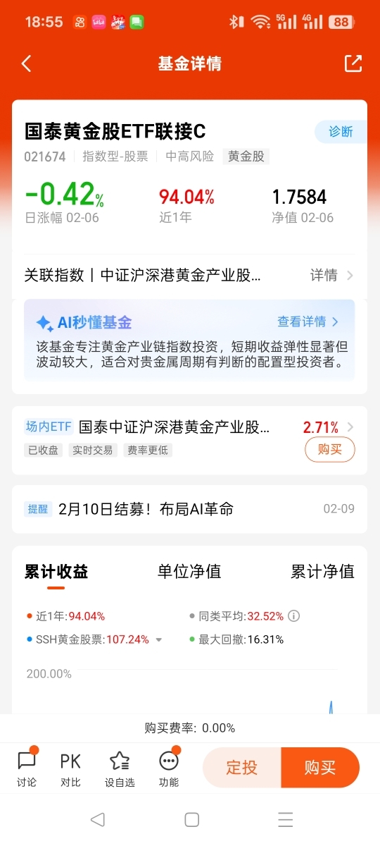 $国泰黄金ETF联接C$