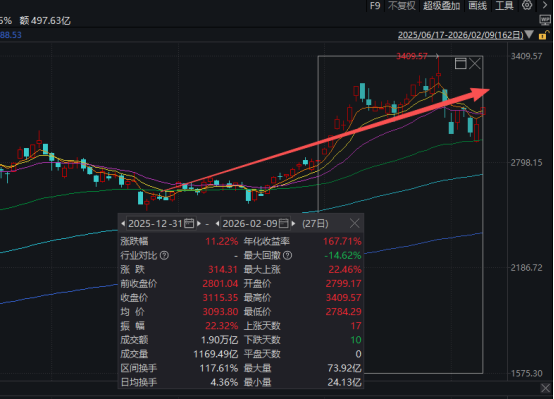 先看铜,被称为“铜博士”不是没道理——它渗透到所有工业领域,建筑、家电、电网都要用,以前是经济晴雨表,现在更是能源转型和科技基建的“刚需品”。截至2月9日,沪铜主连报101840元/吨,虽然比1月底的高点有所回调,但依然站稳10万/吨大关。
