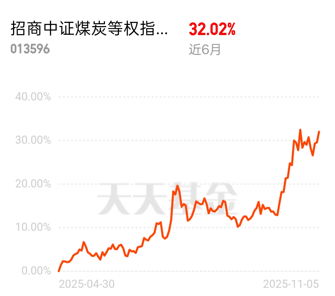 煤炭行业供需两旺,行情持续向好发展。招商中证煤炭等权指数C昨日日涨幅1.88%,近6个月收获32.02%,贸易商加大拉运力度得益于铁路运费优惠,需求端持续发力,供给端难以满足,煤价上涨。$招商中证煤炭等权指数(LOF)C$