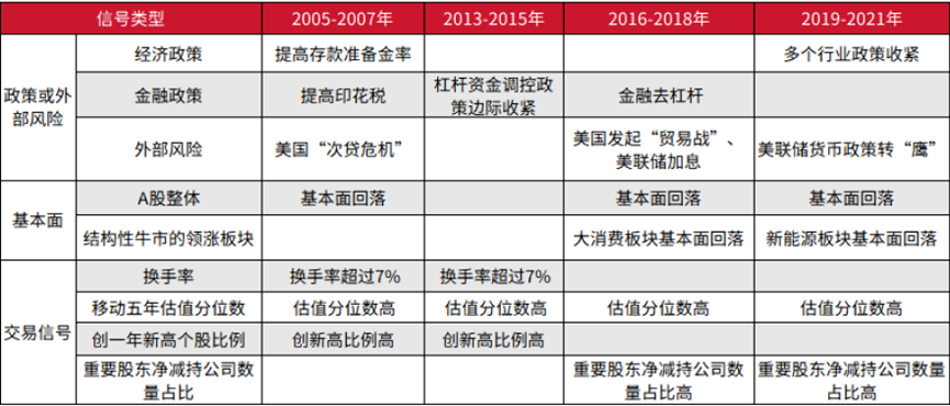 光大证券曾总结过牛市见顶的三大要素:政策或外部风险率先出现、基本面同步回落、交易信号最终确认。