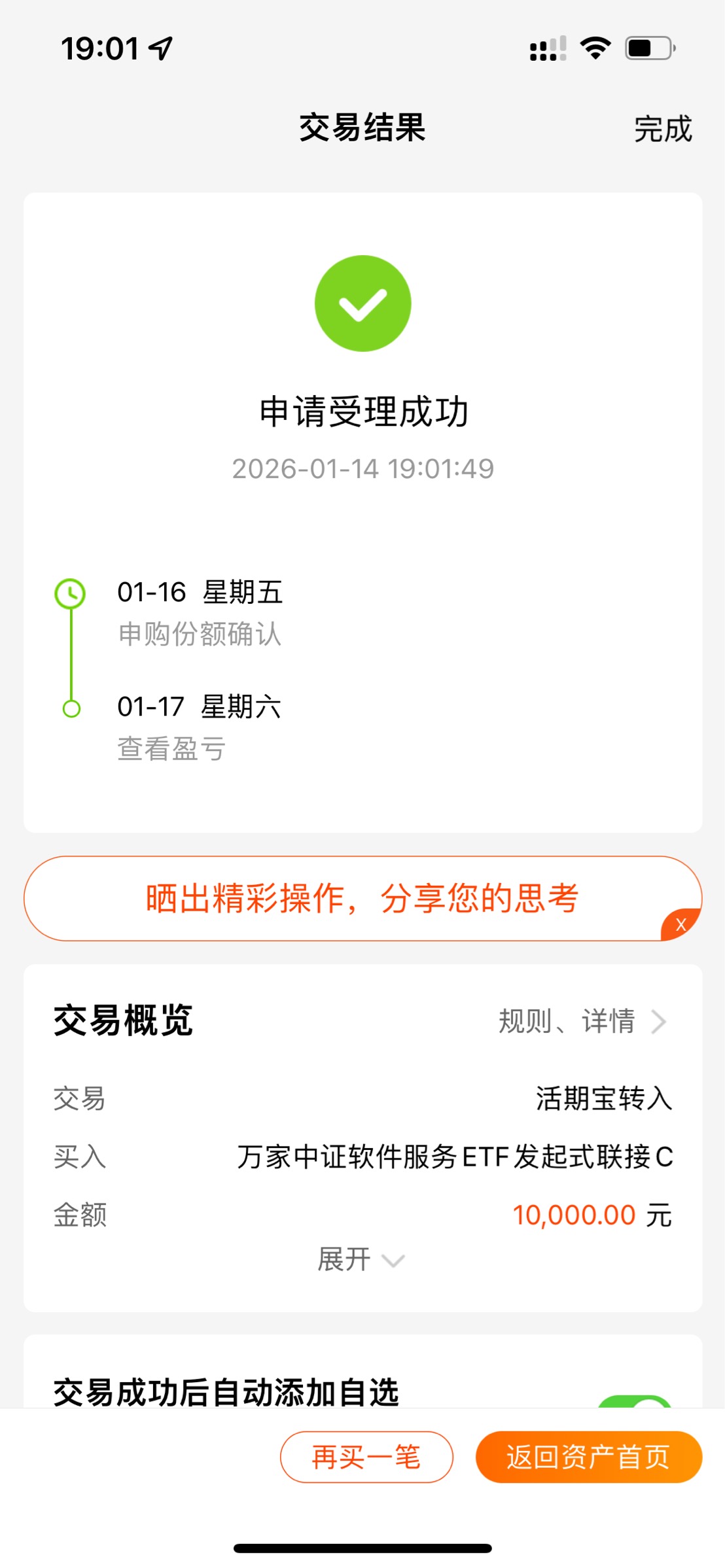 仔细观察最近的市场,会发现科技仍旧是未来最重要的方向之一。而$万家中证软件服务ETF发起式联接C$ 作为一只深度参与算力与AI全产业链的基金,最近几天表现可以的,就算波动也不是很大,展现了它的实力。继续加仓,稳稳持有