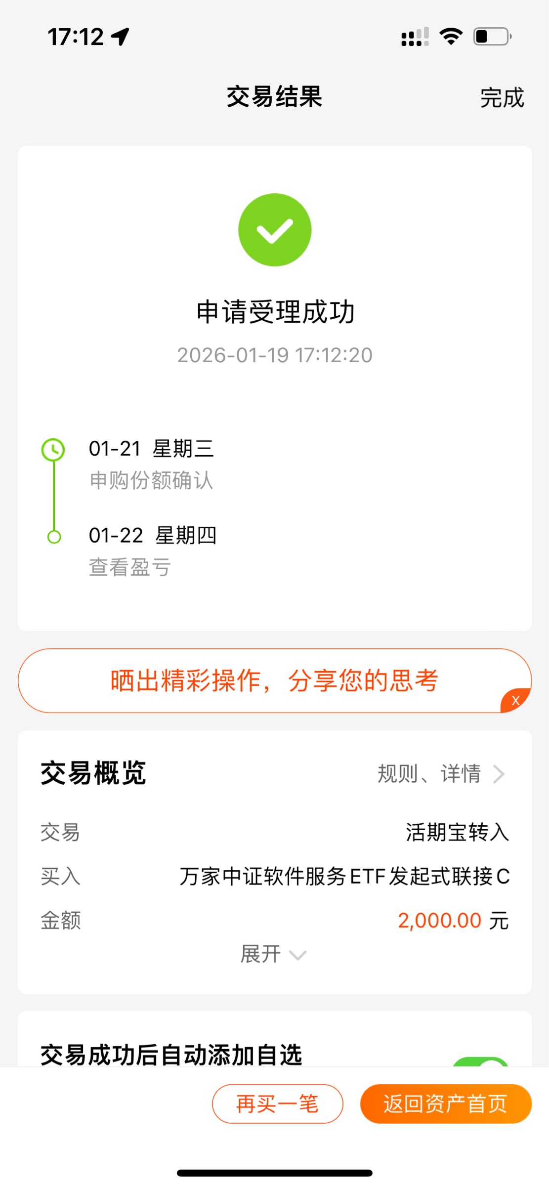今天ai应用早上还不错,但是下午有所调整,我觉得也是时候布局万家中证软件服务 ETF发起式联接,这个重仓AI应用,近一个月22%这是个聚焦算力与AI全产业链的硬核科技基,爆发力强,继续拿住,期待后面表现~
