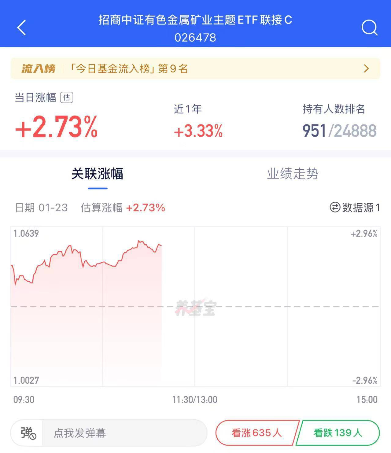 贵金属确定性越来越高,有色板块今日大涨直接印证,招商中证有色金属矿业主题ETF发