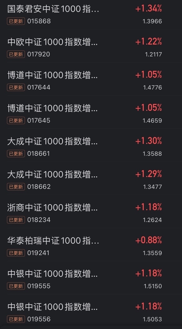 $国泰君安中证1000指数增强C$ 上涨1.34%