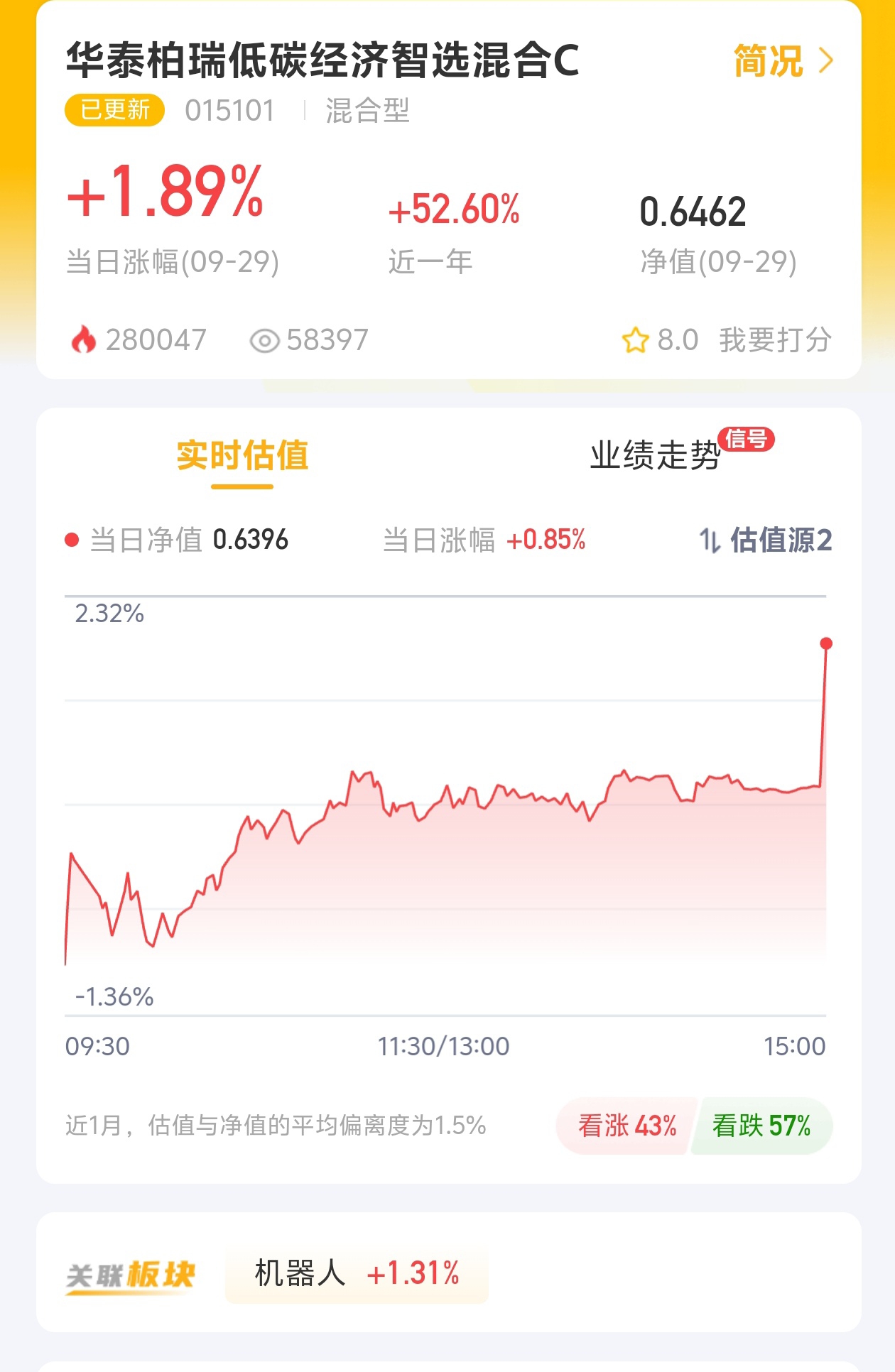 聊起机器人行情,我发现很多人要么不敢进,要么乱买一通。其实现在板块里细分领域很清晰,减速器、执行器这些都是资金重点盯着的,逻辑硬得很。但普通投资者很难精准踩中每个环节。我推荐华泰柏瑞,它专门投低碳经济相关的优质公司,机器人属于高端智能制造,正好在它的覆盖范围内,基金经理会帮着筛选质地好的企业。虽然这基金有波动,但昨天净值涨了1.89%,说明跟上了市场节奏。想布局机器人赛道又怕麻烦的,可以看看,就是得记住是中高风险,得长期拿。