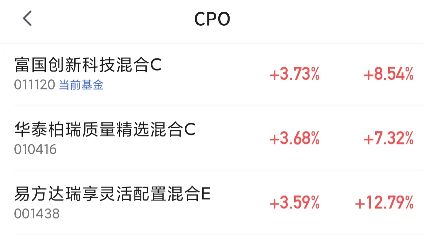 $富国创新科技混合C$ 涨3.73%,$华泰柏瑞质量精选混合C$ 涨3.68%,$易方达瑞享混合E$ 涨3.59%,都很厉害