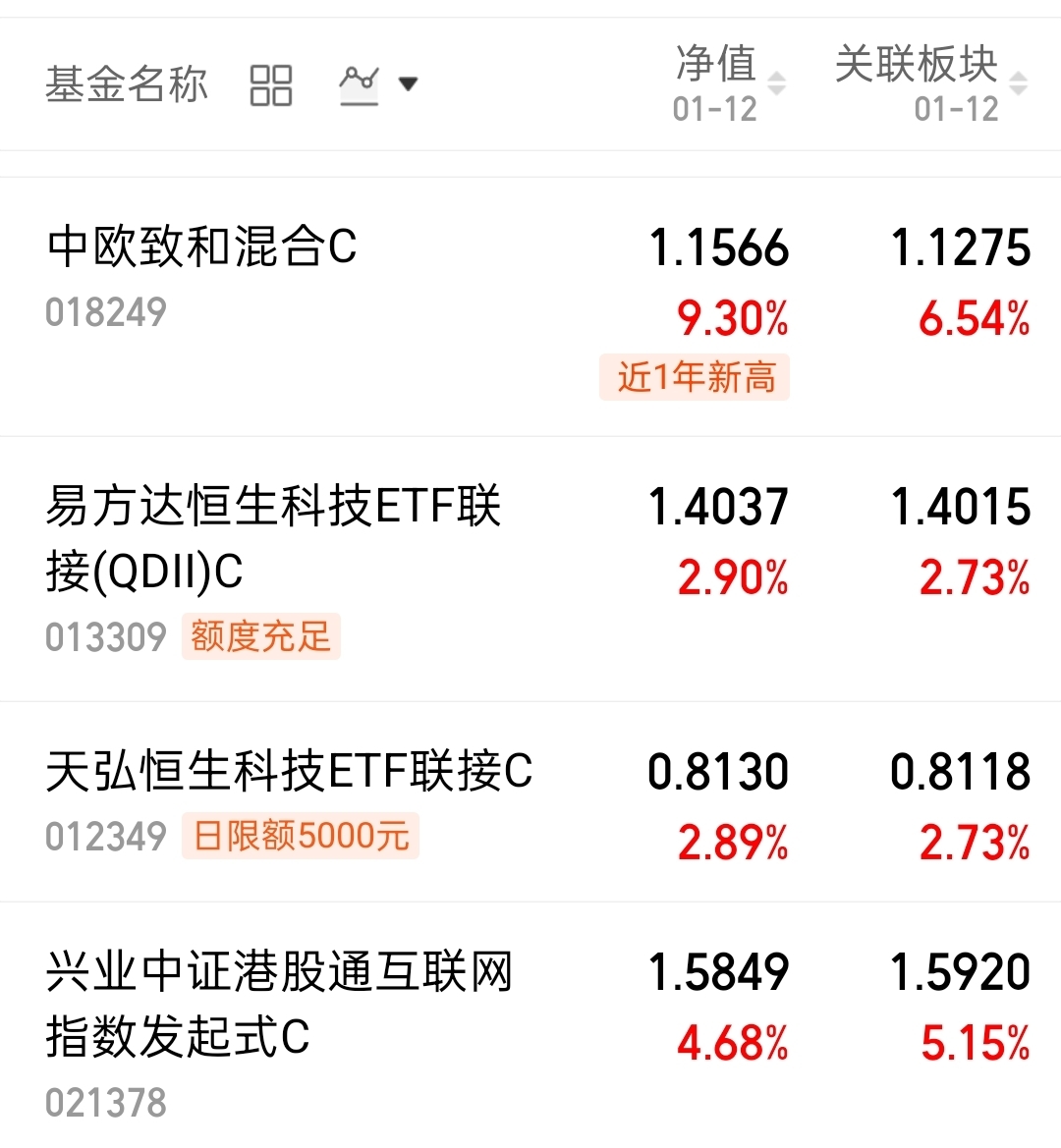 $兴业中证港股通互联网指数发起式C$ 涨4.68%