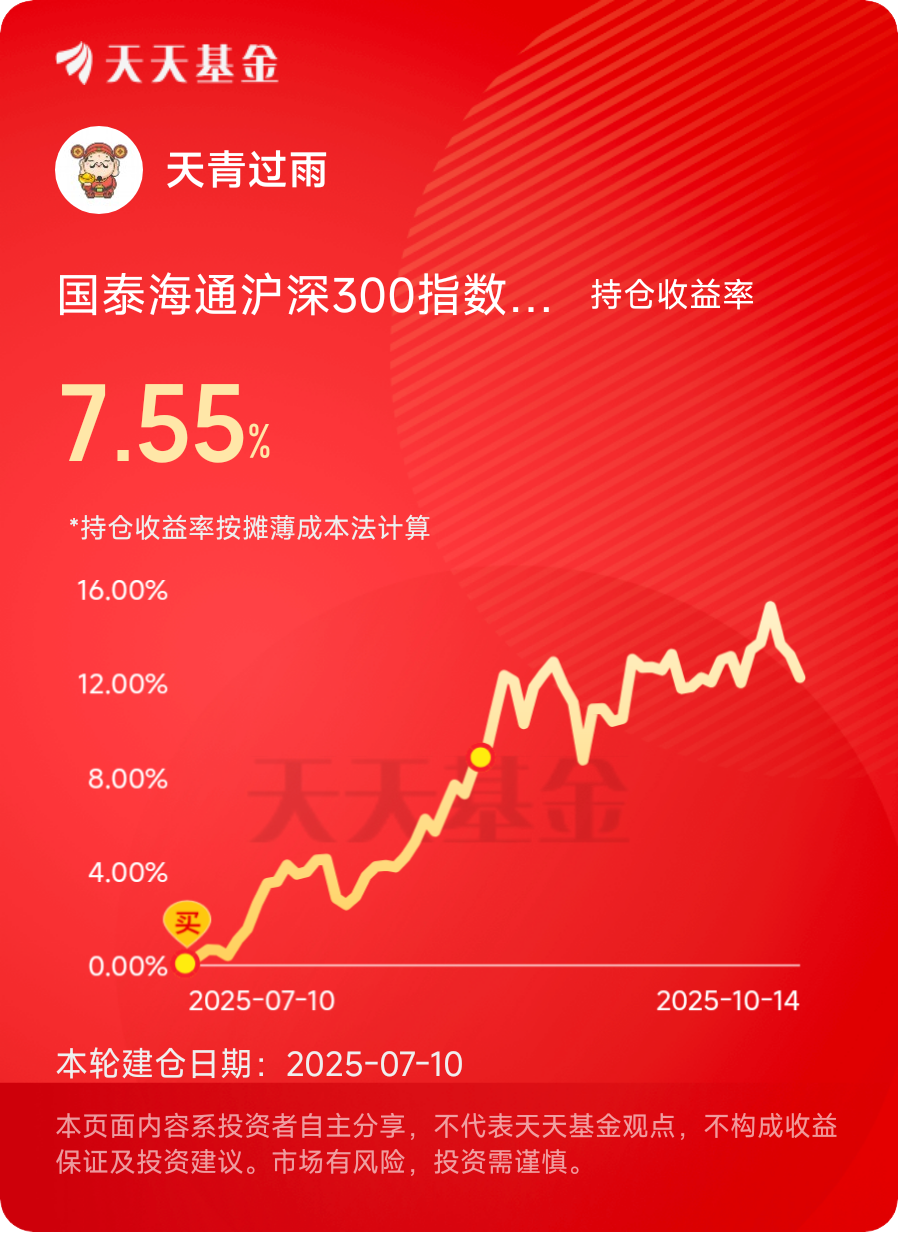 现在市场波动大,还是宽基比较稳一点$国泰海通沪深300指数增强发起A$ #晒收益#