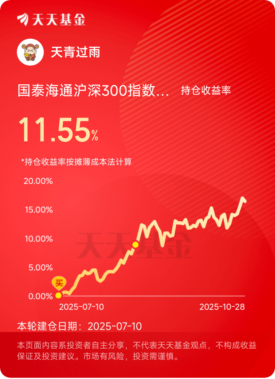 还是宽基稳定一点,沪深300具有长期稳定的盈利能力。$国泰海通沪深300指数增强发起A$ #晒收益#
