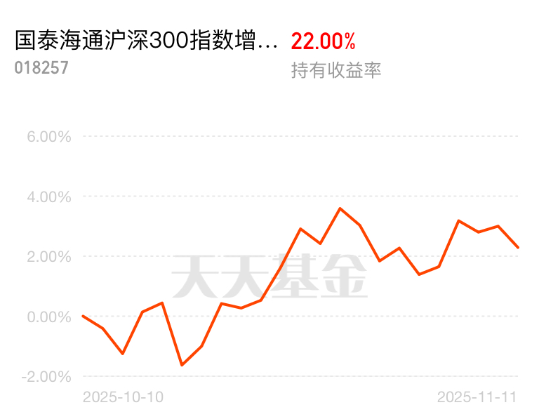 沪深300指数超额好起来了,继续定投起来了$国泰海通沪深300指数增强发起A$