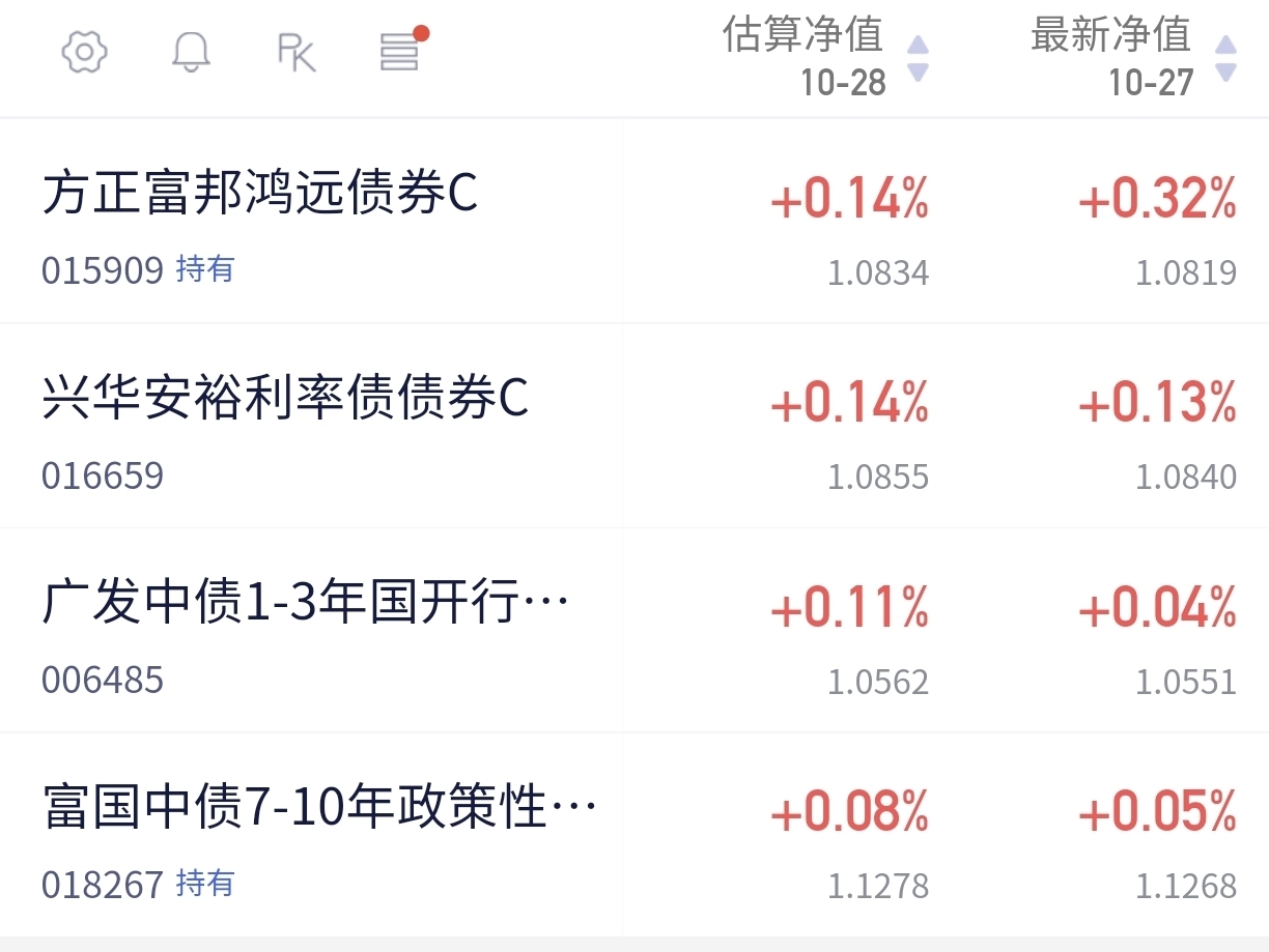 利率债大晴天,盘面虽然小绿,叠加昨晚存量,整体恐龙蛋盘;信用债大晴天,中短端预计+2到+4个左右,中长端预计+5到+10个左右。我觉得$方正富邦鸿远债券C$ 今天收蛋会在80-85个之间,最近收蛋都比同类要多,可以说是利率债一哥了。7-10年的话应该就收16-22蛋;0-5年利率债应该是2-5蛋。我对于债市后面还是看好的,可以说期待债市开始上涨行情了,重启买债加上资金面宽松,债市做多情绪已经聚集!期待今天能够继续拉升!
