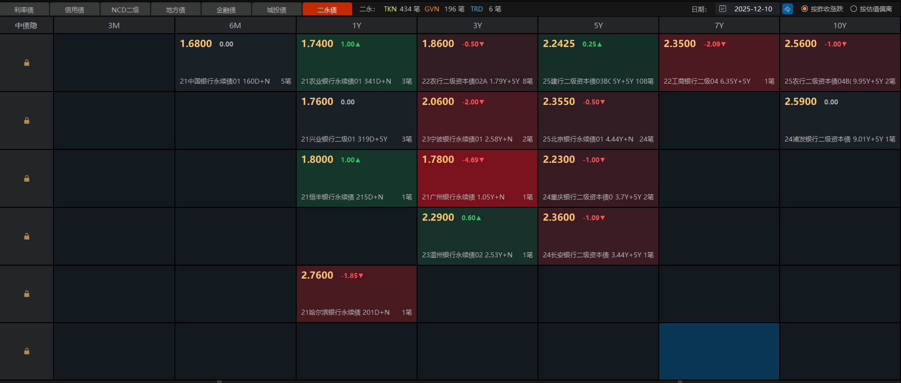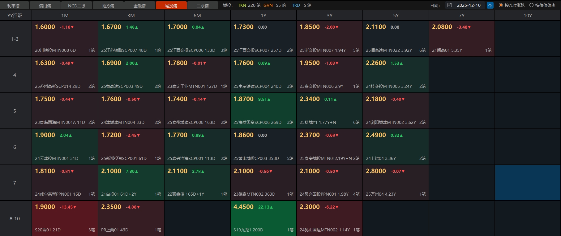12月10日债市午间天气播报:上半场隔壁大盘延续震荡,3831家个股下跌,双创表现较弱,可转债则小幅波动。11月CPI温和回升、PPI同比降幅微扩,通胀压力不大,生产端也没明显改善,这意味着货币政策暂时不太会收紧,债市大幅上行的概率低。不过短期还是区间震荡,资金面宽松下短债更稳一些,我还是配置短债为主。目前债市小幅拉升,整体小蛋行情。午间数据:7-10年期收蛋4-7个,超长期国债轻仓收蛋10-15个(华子),重仓收蛋个16-25(方正、丰和)。