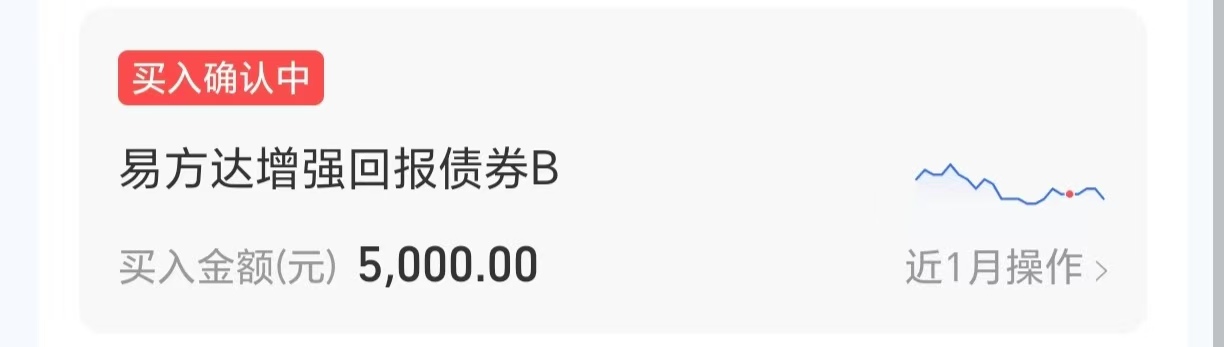 $易方达增强回报债券B(OTCFUND|110018)$+5000,近期股债的波动都比较大,前段时间我配置了一部分高波动的固收+,至今净值都还没修复好,年底还是求稳一些,转投一部分低波动的固收+。这只固收+回撤控制较好,持仓中信用债占大头,还搭配小部分利率债和可转债,这样兼顾票息收益和权益增强弹性,还有效地降低了波动。股票仓位占比13.94%,布局的周期、新能源、金融这些板块,都是有成长潜力的。从收益曲线来看,比较平缓,遇到回调修复周期也比较短。今天,我决定继续加一笔。