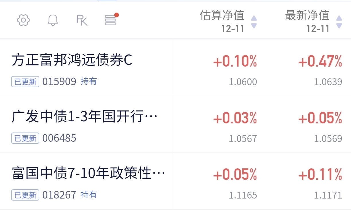 债市三连涨,情绪挺好。$方正富邦鸿远债券C$今天又收47个蛋,三天累计129个,