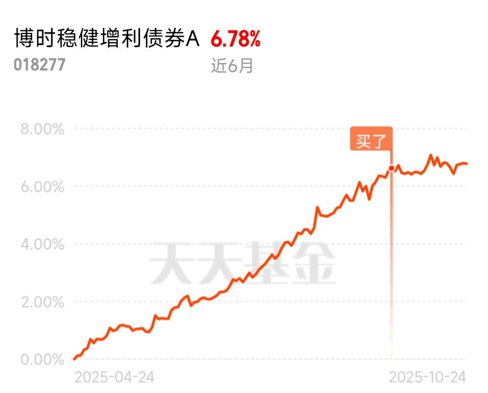 感觉债市的整体基本面在好转,呈现上行趋势,$博时稳健增利债券A$ 表现相当不错,上周不少基金都在回调,它却保持住了正收益,各个阶段业绩都稳扎稳打,长期收益也在同类产品中领先。最近宽货币预期升温,专家都说按过去三年“一年两降”的惯例,四季度降准降息的可能性很大,这对利率债来说是大利好。这只基金的债券仓位里利率债占比不低,基金经理调仓也很及时,二季度就悄悄拉长了久期,现在正好能吃到利率下行的红利。而且它不只靠债券,权益仓的表现同样亮眼,这部分仓位虽然只占20%左右,却让基金近半年收益冲到了6.78%。持仓里的思摩尔国际占净值比1.6%左右,这家公司最近在雾化科技领域有技术突破,股价从9月底就开始回升,单月大涨,直接给基金贡献了不少收益。还有中国太保,作为保险龙头股息率特别高,最近跟着大盘回调后估值很划算,基金经理趁机加仓,这波操作太精准了。现在债市有供给端利好托底,权益仓又踩中优质标的,这基未来收益空间巨大。#科技热点摊开业啦#