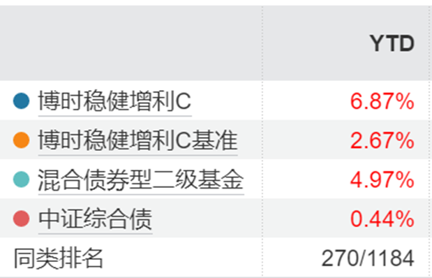 当下,“固收+”产品由于股债的对冲,债市提供安全垫,股市波动反而创造加仓机会。股债对冲策略在市场震荡中展现极致优势,既规避了股市风险,又捕捉了利率下行红利。对于稳健的投资中来说,仍然是追求“稳中求胜”的选择之一,我会继续持有博时恒乐与$博时稳健增利债券C(018278)$ (博时恒乐限购了,同一策略),博时稳健增利C今年以来收益率仍有6.87%,超过同类产品的4.97%,更远超中证综合债的0.44%,继续安心持有。该基97.37%债券打底(主信用债占大头):确定性强的票息收益构筑厚实“安全垫”,约14.07%股票增强弹性:小仓位灵活捕捉权益机会。近半年最大回撤0.56%,回撤控制的非常好,真正的稳健中追求弹性收益~