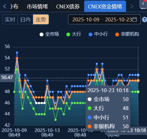 DR001报1.31%左右,DR007报1.41%左右,资金情绪均衡(CNEX资金面情绪指数在50)