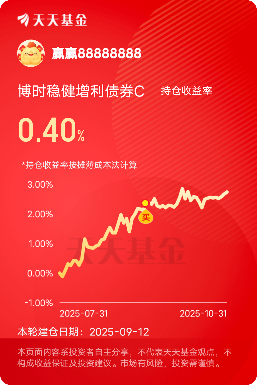最近收益不错,又添了正收益!当前市场利率环境对债市还挺友好的,加上权益部分给力,